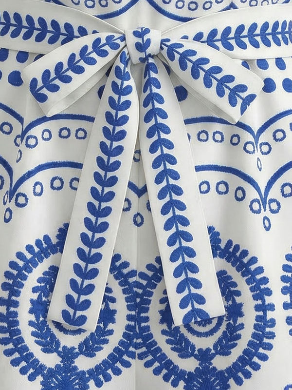 Blau 1930er Urlaubs Platziert Druck Gürtel Romper