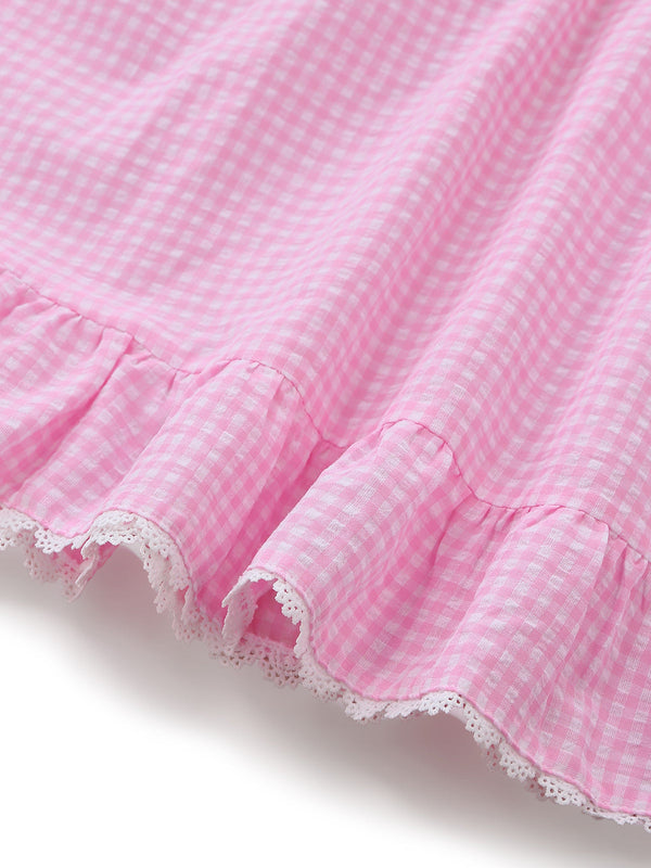 Rosa 1960er Schleife Spitze Vichy-Karo Schnürung Kleid