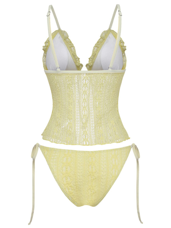 1940er Spitze Stricken Doppelschicht Stoff Tankini Set