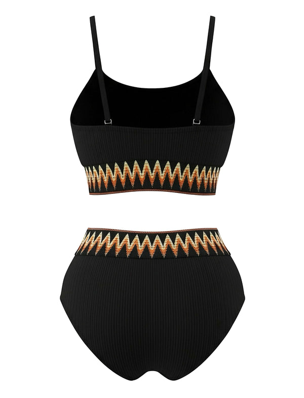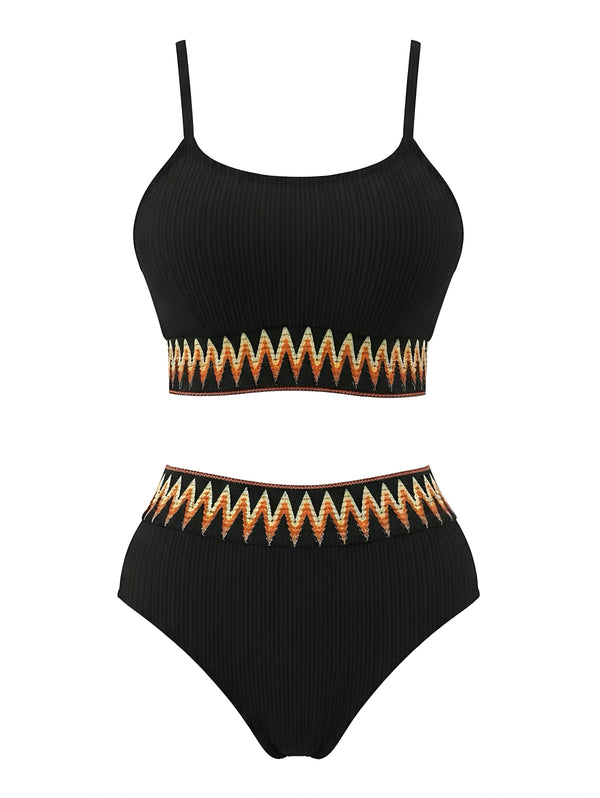 1950er Zigzag Muster Hochgeschnitten Gerippt Bikini Set