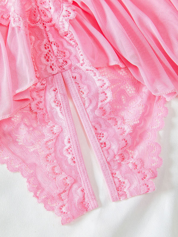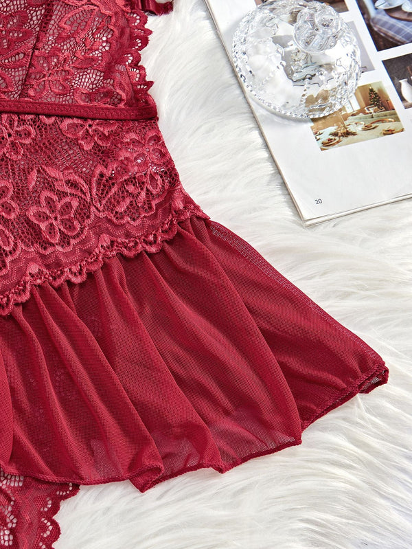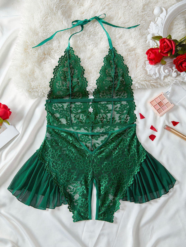 1980er Halter Spitze Dessous mit Leopard Druck Rock