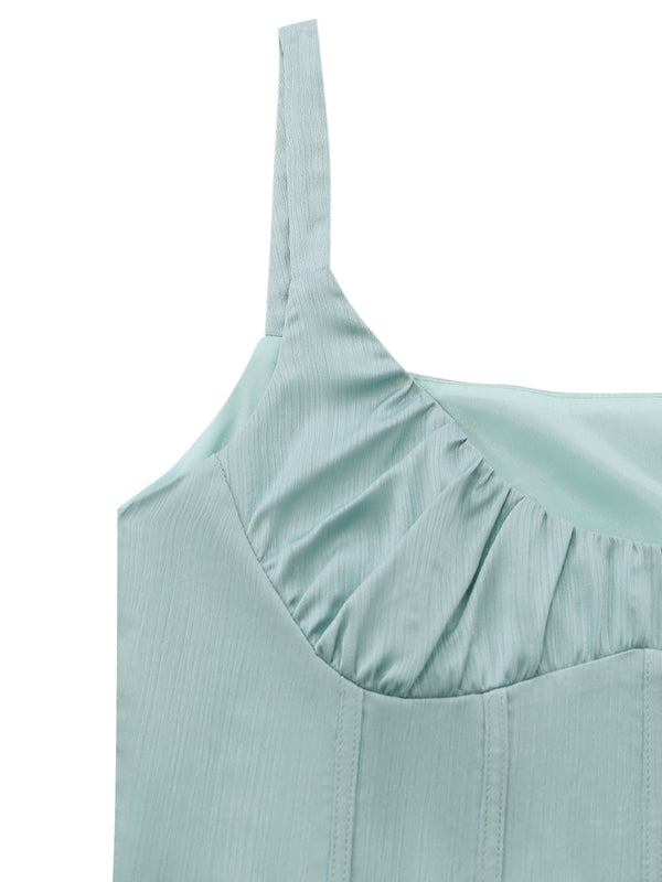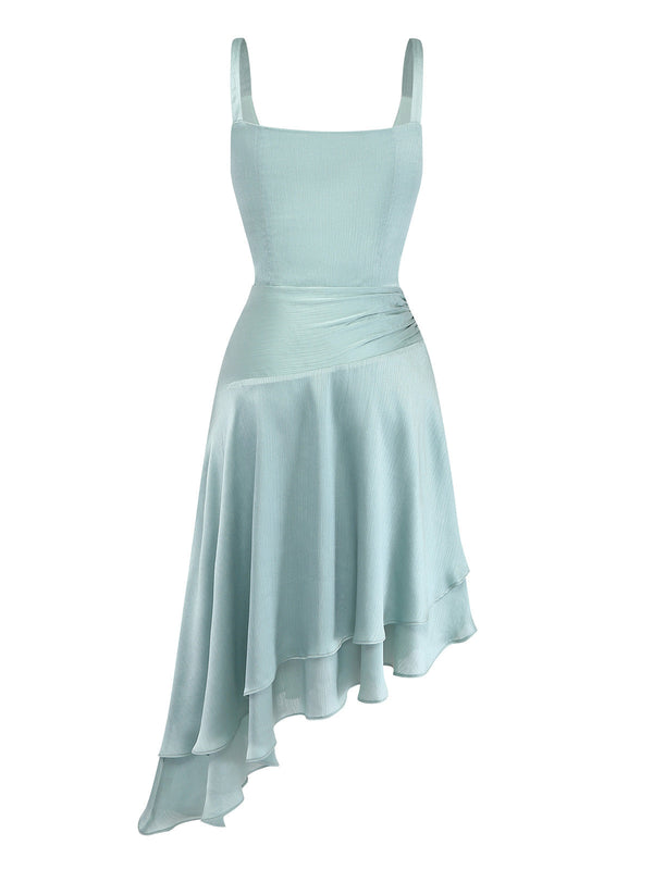 [Vorverkauf] 2PCS Grün 1960er Wellen Fischgrät Top & Asymmetrisch Rock