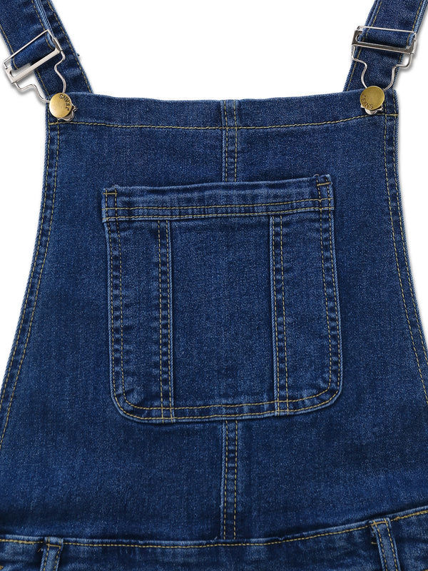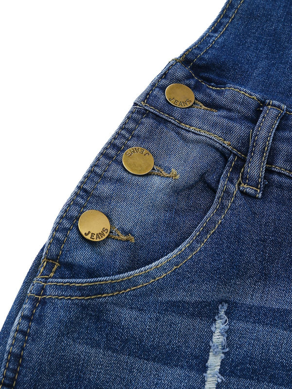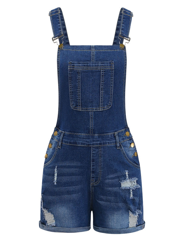 Blau 1970er Stretch Zerrissen Denim Overall Romper
