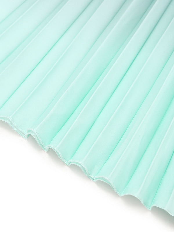 Grün 1940er Schulterfrei Plissiertes Farbverlauf Kleid