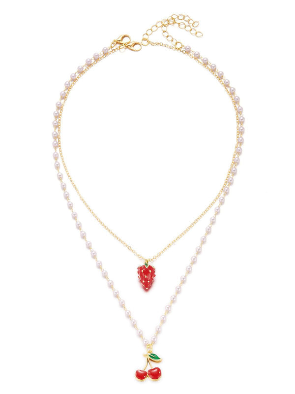 Kirschen Erdbeeren Perlen Anhänger Mehrreihige Halskette