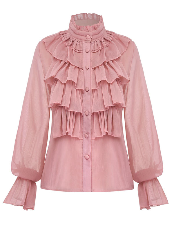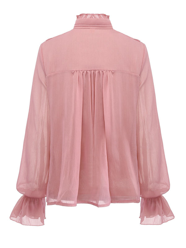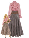 2PCS 1980er Chiffon Rüschen Hochhals Bluse & Schnürung Plaid Rock