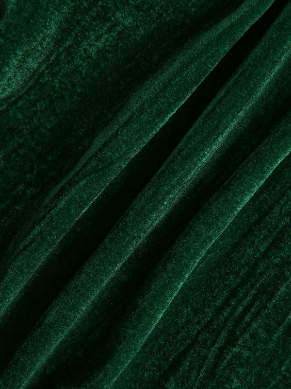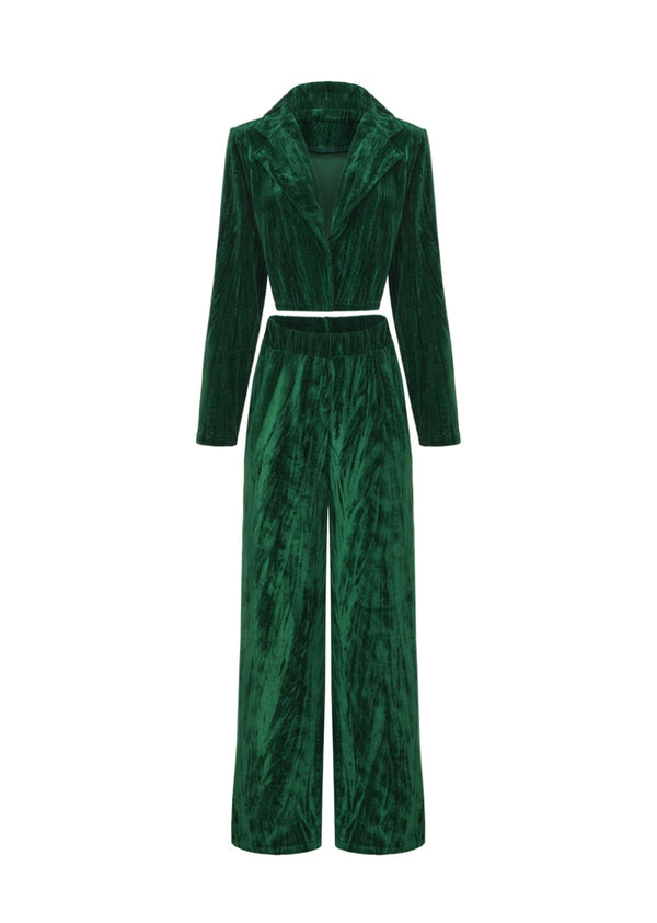 2PCS Grün 1980er Solide Plissiertes Flanell Blazer & Weites Bein Hose