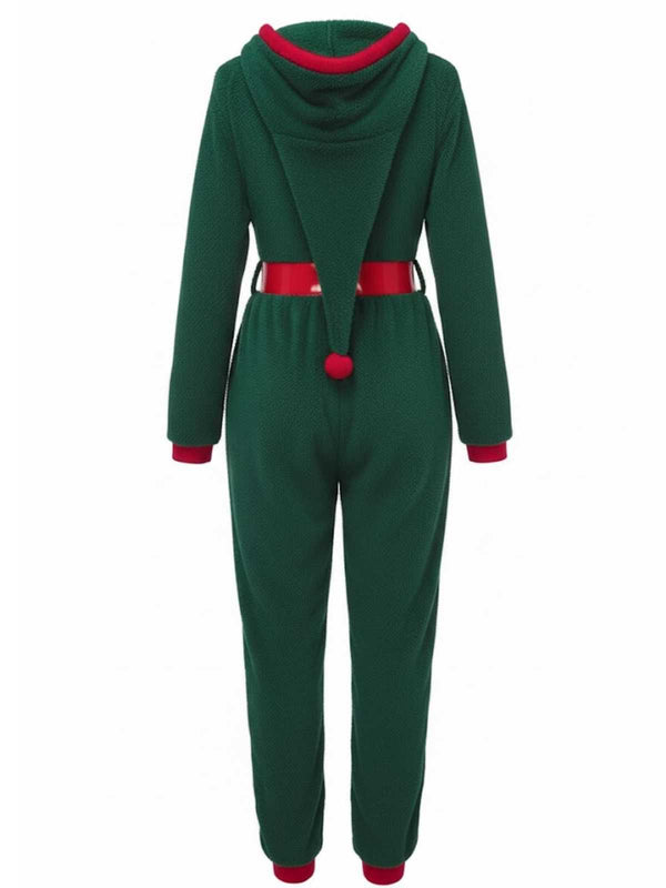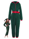 Grün 1970er Weihnachten Sherpa Hooded Jumpsuit Pyjama