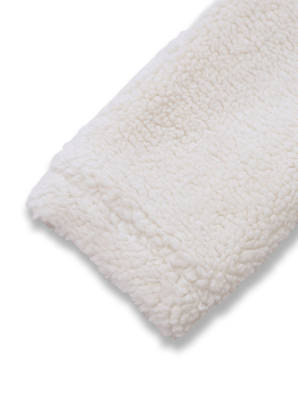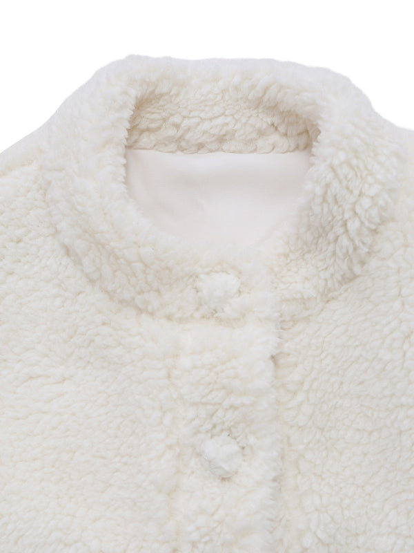 Weiß 1960er Faux-Wolle Stehkragen Jacke
