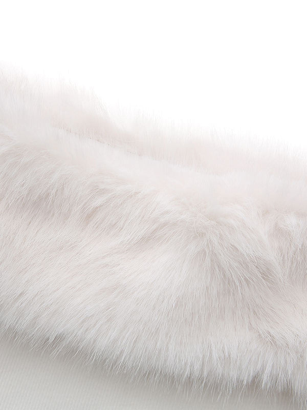 Weiß 1960er Weihnachten Faux Pelzbesatz Schulterfrei Kleid