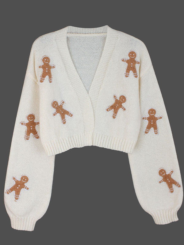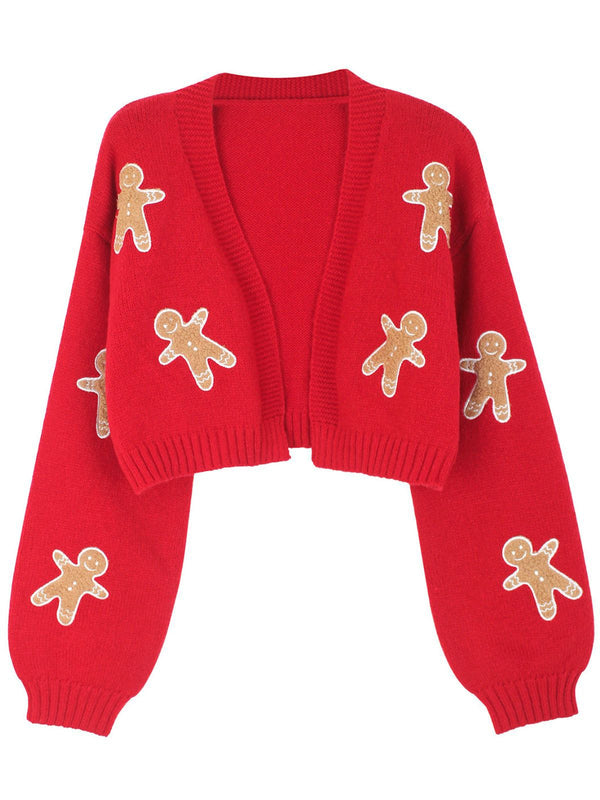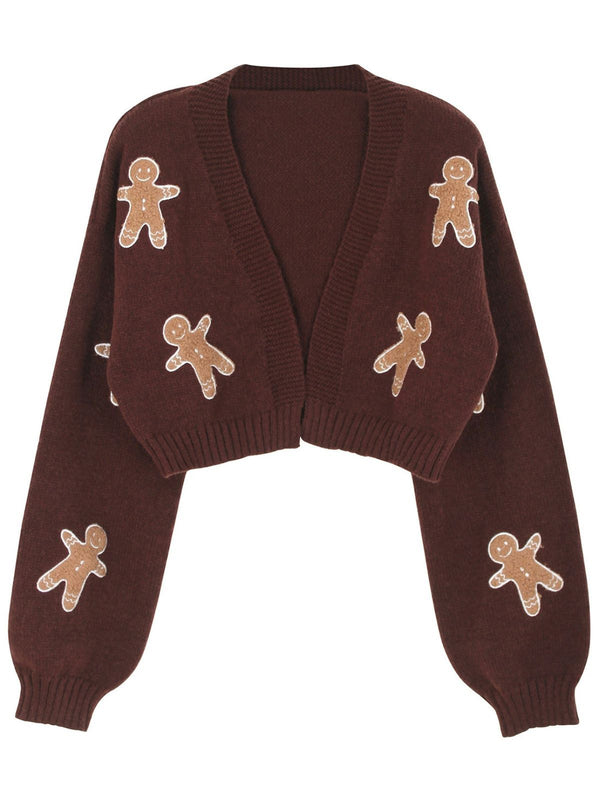 Braun 1960er Weihnachten Lebkuchenmann Kurz Cardigan