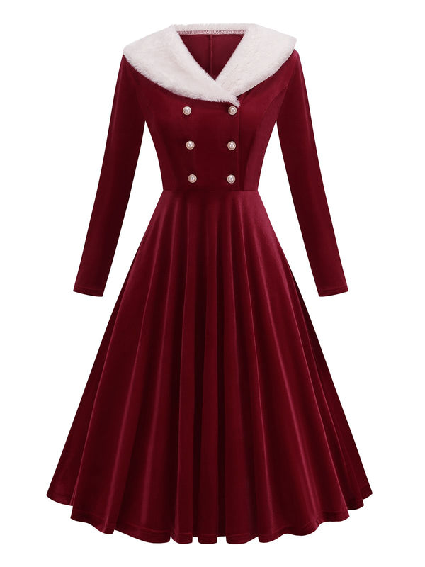 Rot 1950er Weihnachten Samt Santa Pelzkragen Perle Kleid