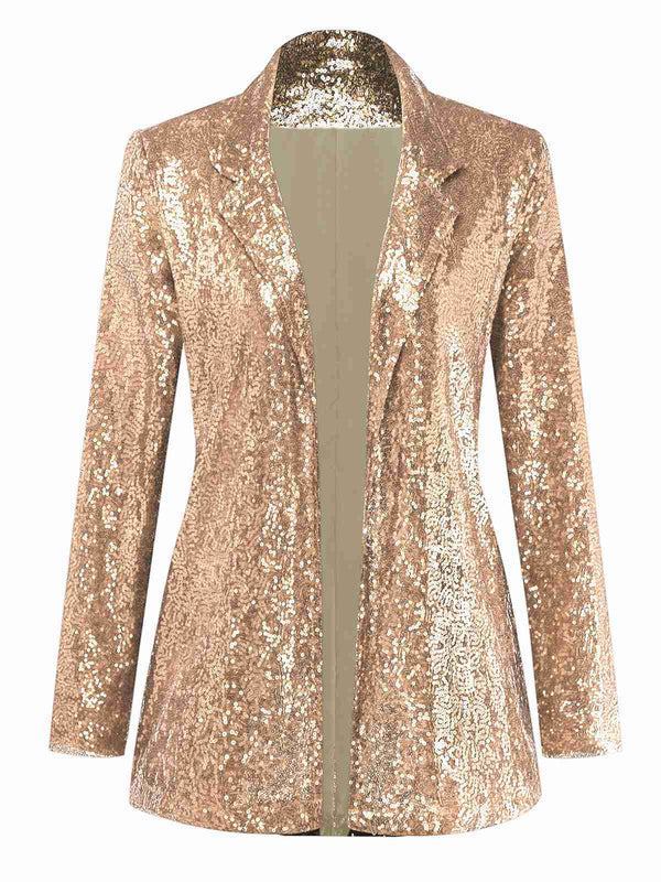 1970er Pailletten Revers Lange Ärmel Jacke