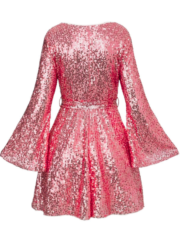 1970er V-Ausschnitt Schlagärmel Pailletten Disco Kleid