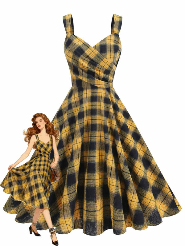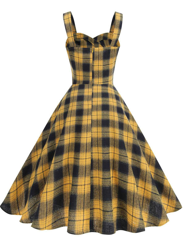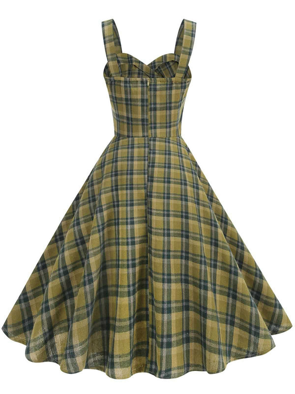 1950er Slip V-Ausschnitt Plaid Swing Kleid