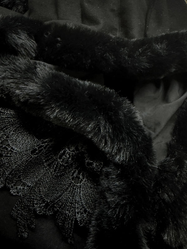 1960er Schwarz Katze Spitze Plüschbesatz Kapuzenumhang