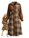 Braun 1950er Plaid Cord Hemdkragen Kleid