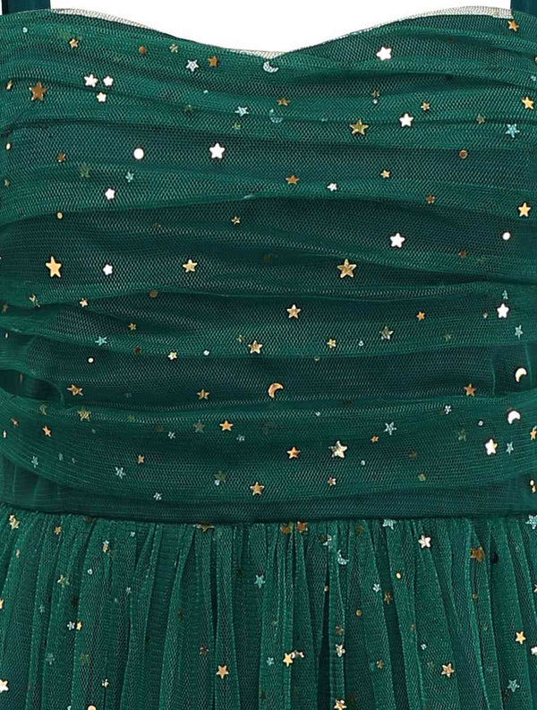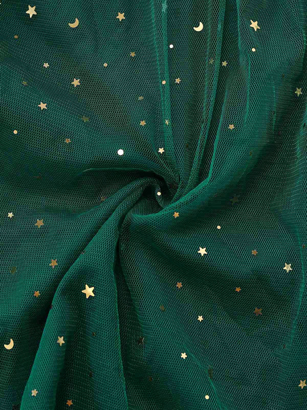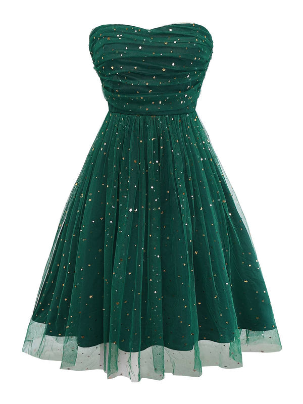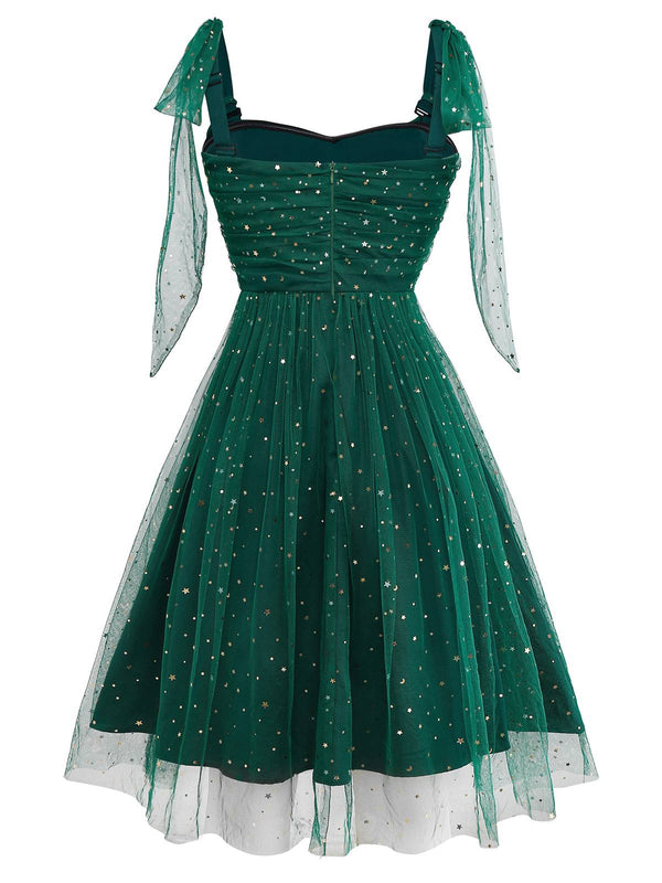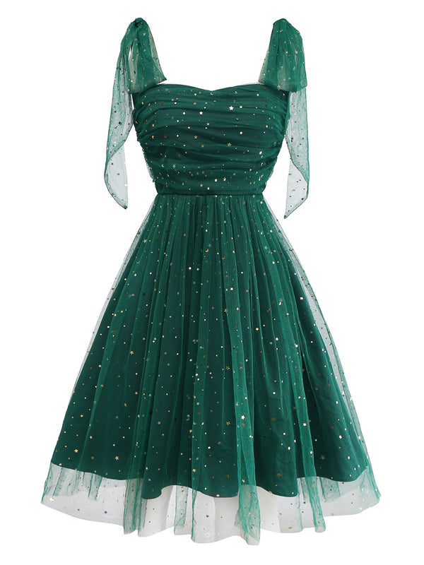 [Vorverkauf] Grün 1950er Glitzer Schulterkrawatte Gerüschtes Kleid