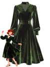 Grün 1950er Schlüsselloch V-Ausschnitt Perle Samt Kleid