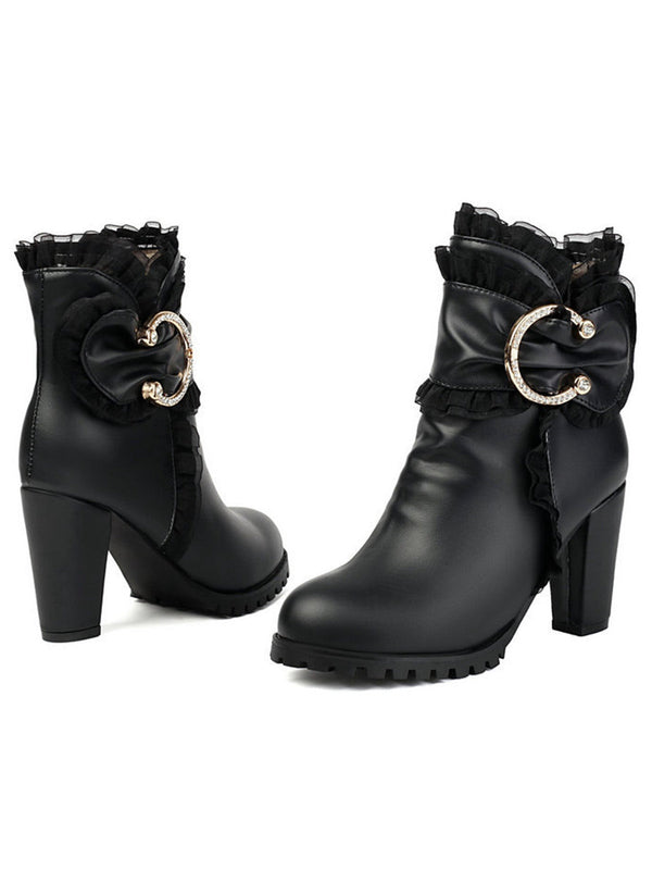 PU Leder Spitze-Getrimmt Chunky Ferse Knöchel Stiefel