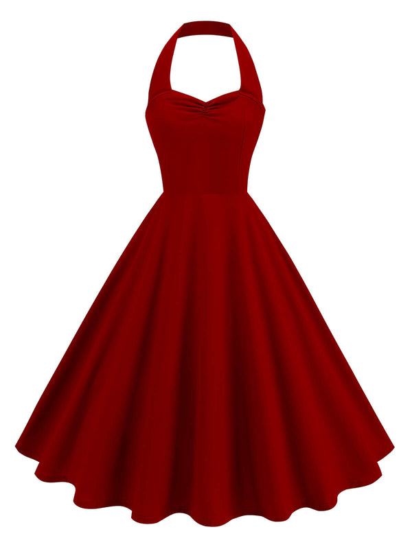 [Vorverkauf] Rot 1950er Solide Herzförmiger Hals Halter Kleid