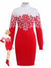 Rot & Weiß 1960er Schneeflocke Rollkragen Pullover Kleid