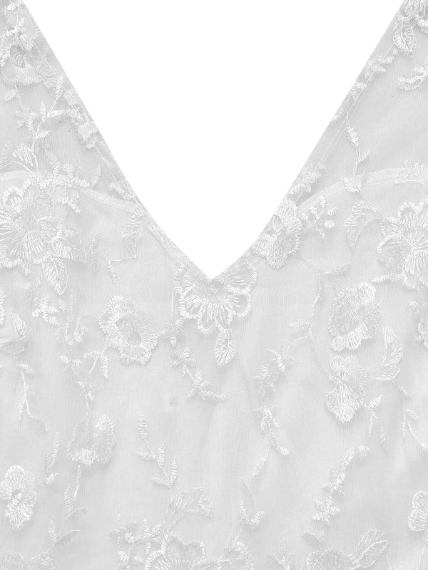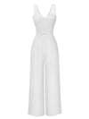 Weiß 1970er Netz Blumen Stickerei Jumpsuit