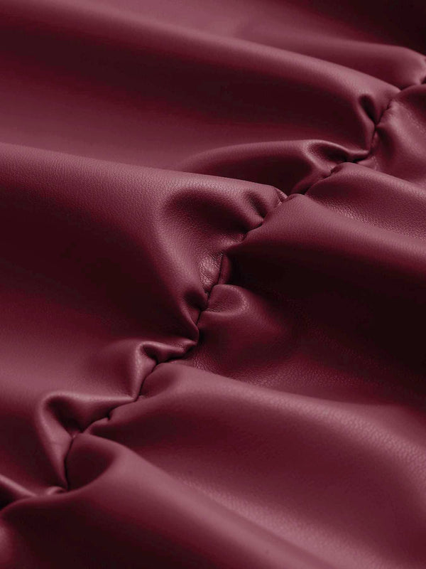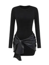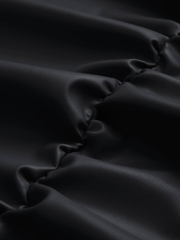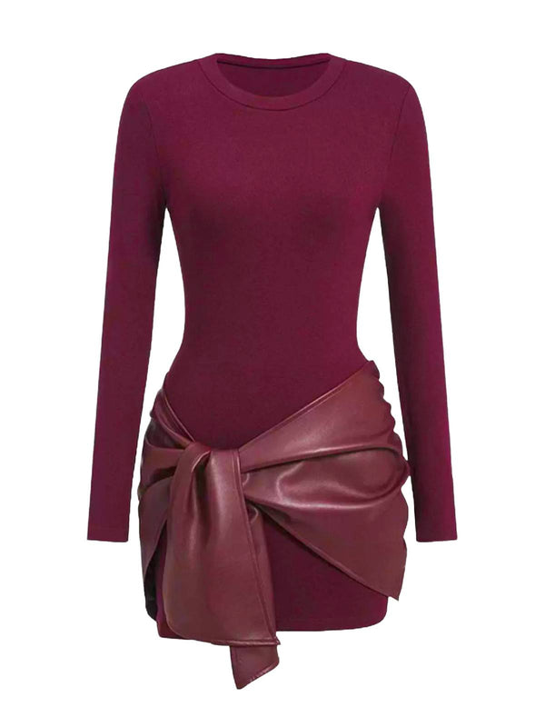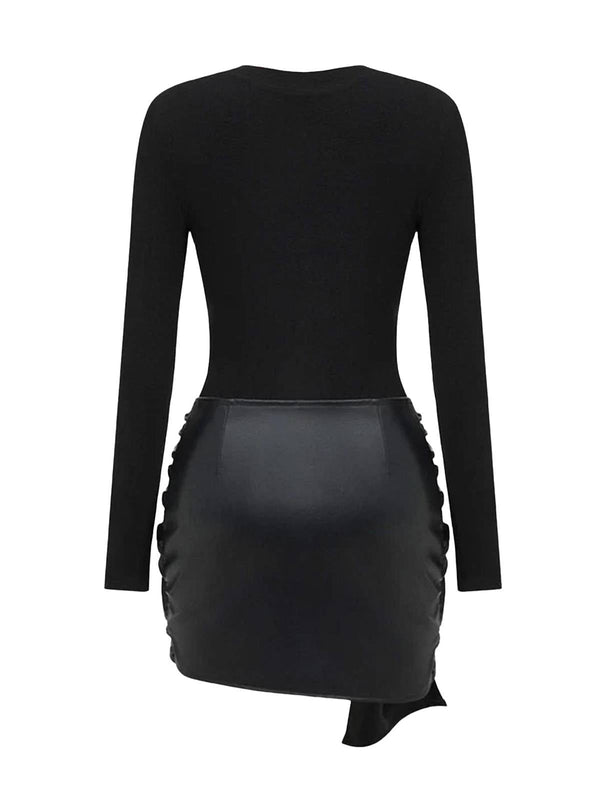 1980er Faux Leder Bogen Langarm Kleid