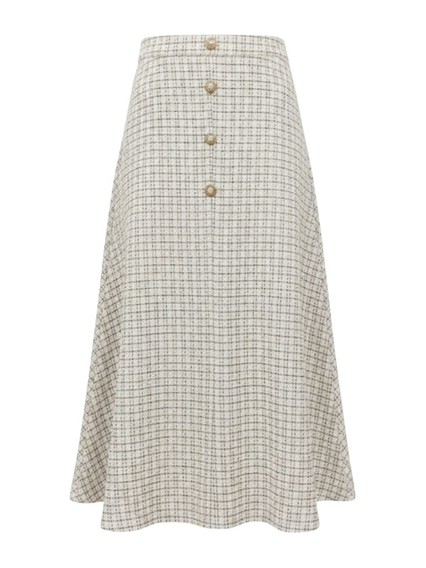 Beige 1940er Perle Taste Plaid Tweed A-Linie Rock