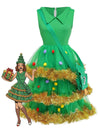 Grün 1950er Weihnachten Baum Abgestuft Kleid Set