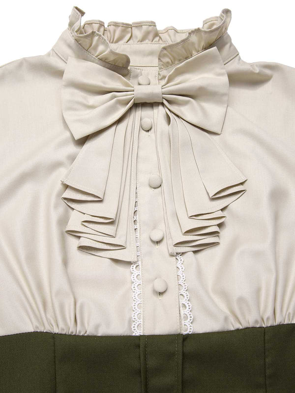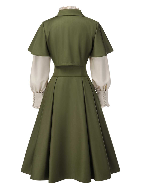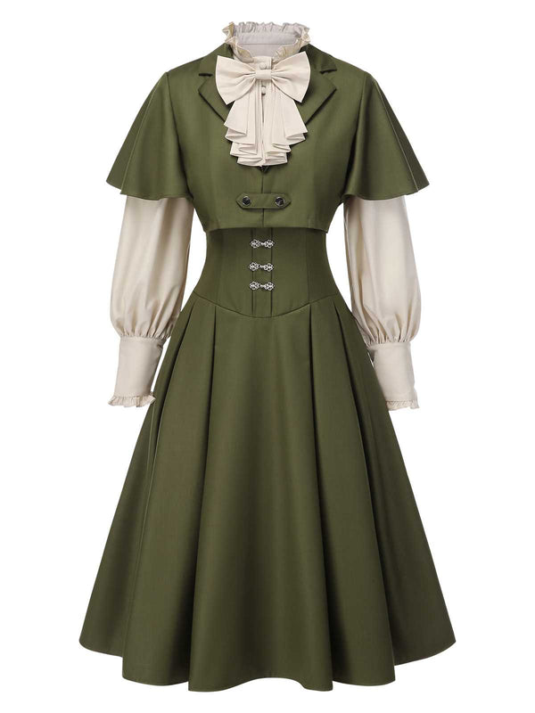 2PCS Grün 1950er Viktorianisch Bogen Tie Kleid & Kurzes Cape