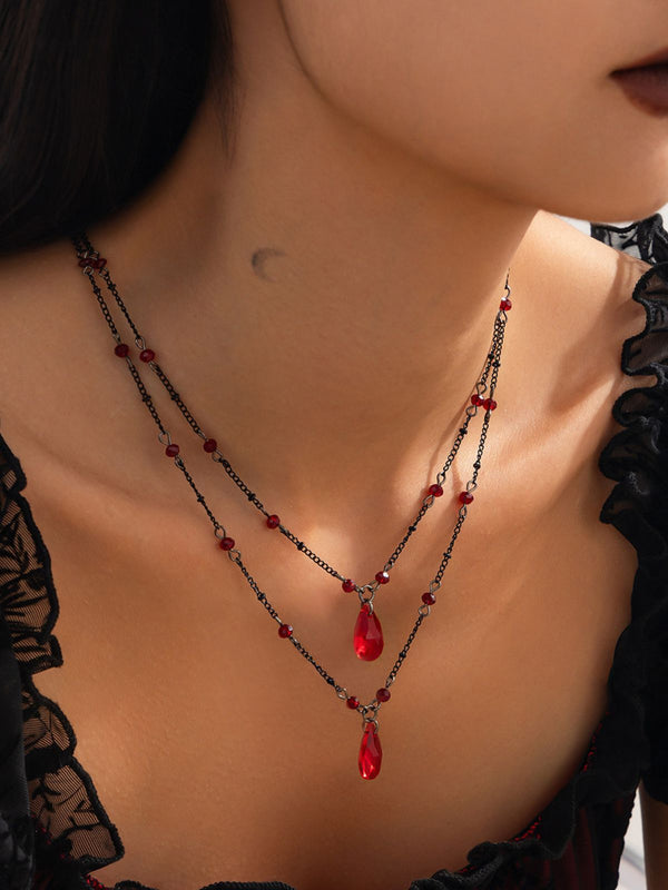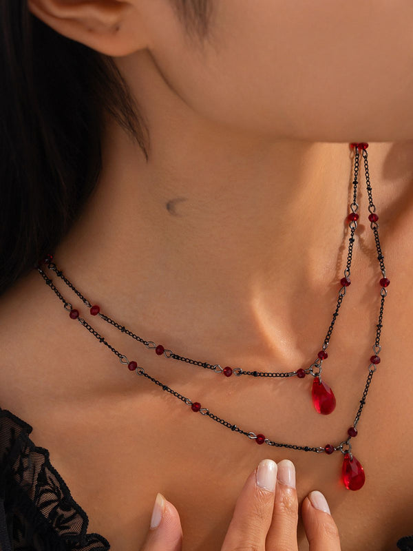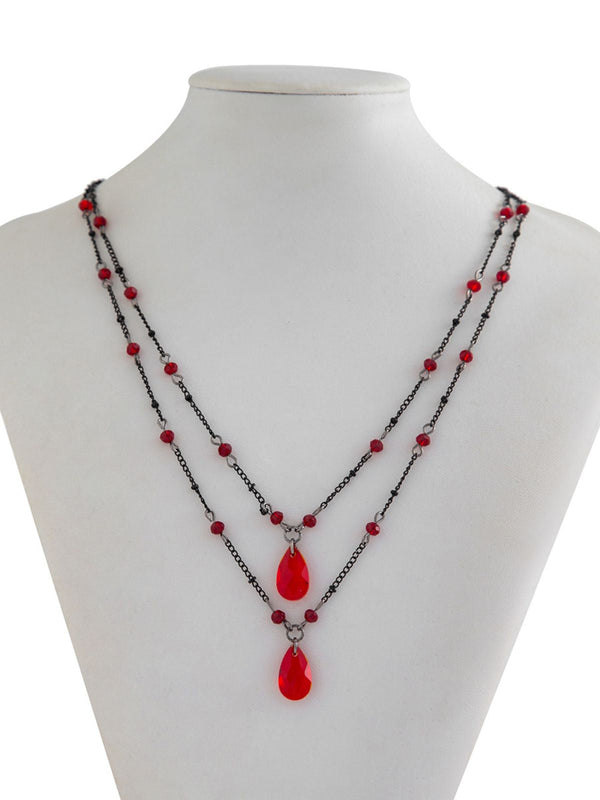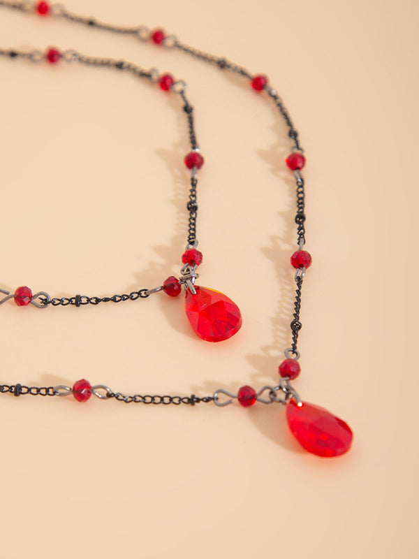 Gothic Doppelschicht Rot Kristall Halskette