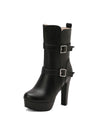 Pu Leder Runde Zehenkappe Keil Ferse Wadenlang Stiefel