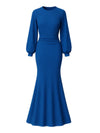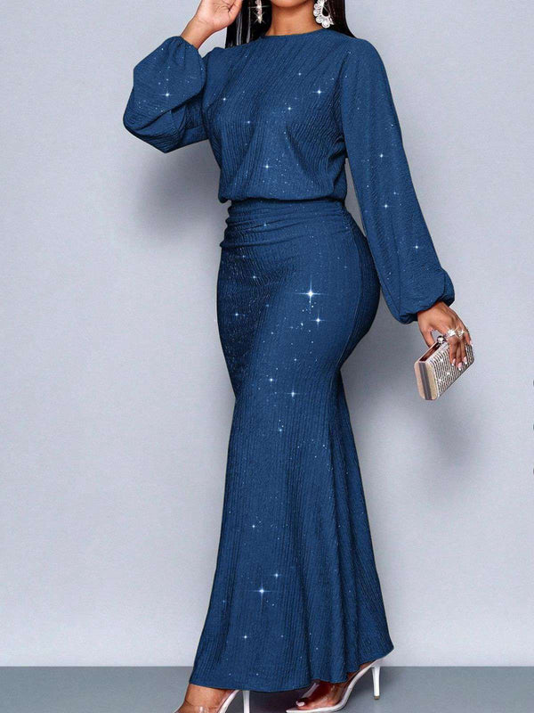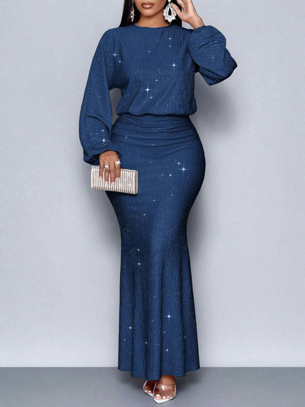1930er Funkeln Gerüschtes Laternenärmel Stricken Fischschwanz Kleid