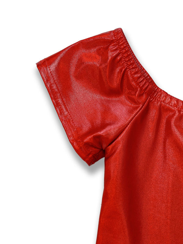 1970er Disco Metallisch Schulterfrei Kurzarm Top