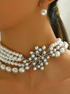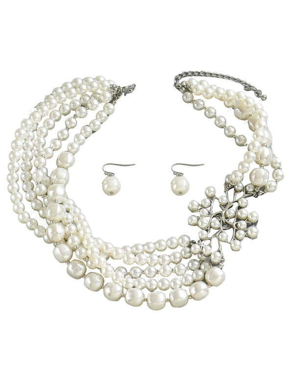Vintage Geschichtete Perle Halskette & Ohrringe Set