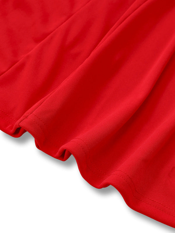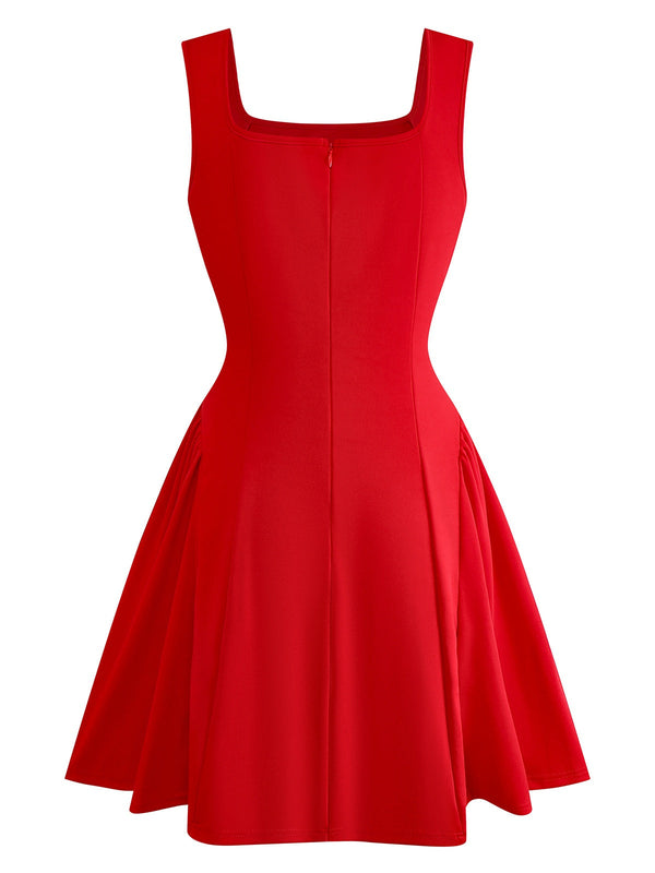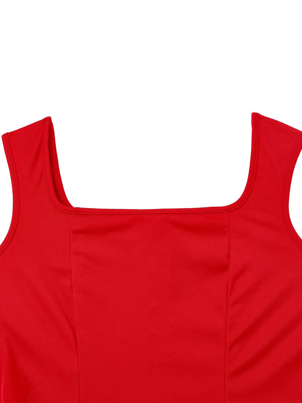 1950er Solide Quadratischer Hals Breiter Gurt Gerüschtes Kleid