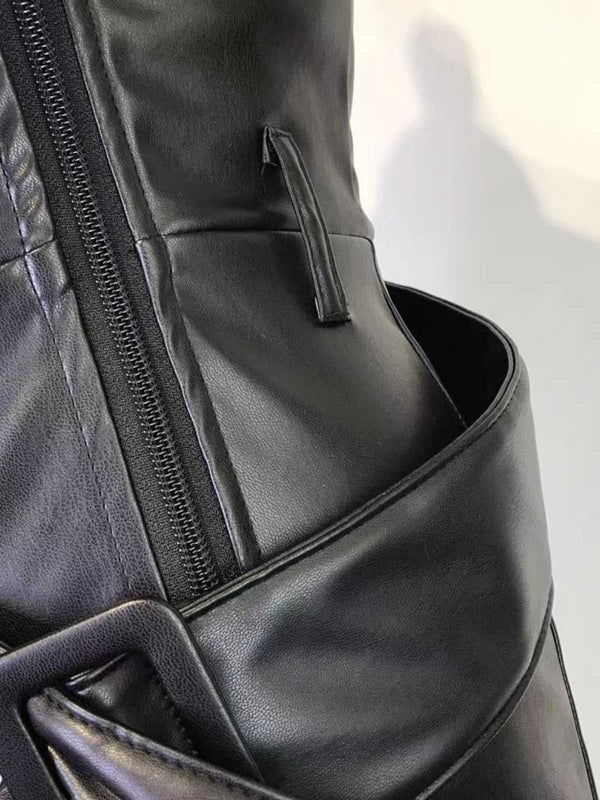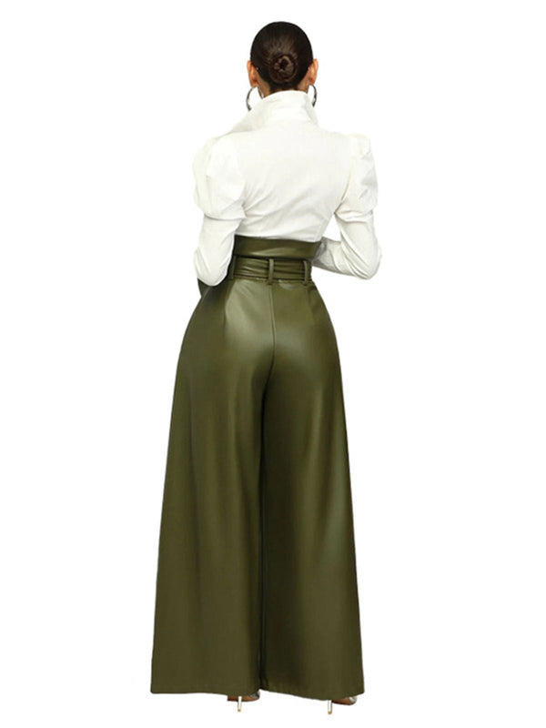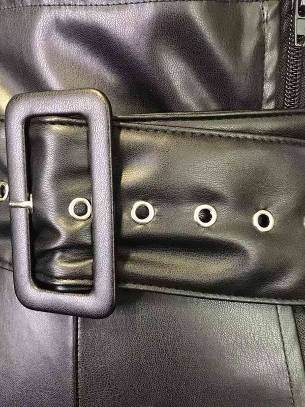 1980er Solide PU Leder Gürtel Weites Bein Hose