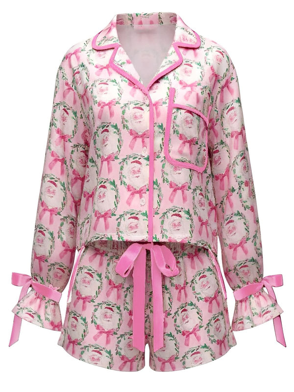 2PCS 1960er Weihnachten Langarm Taste Pyjama Set