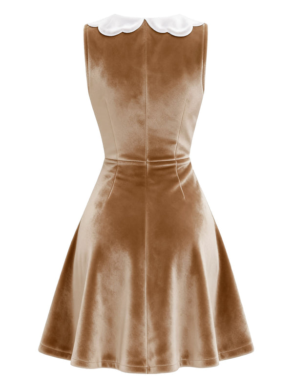 Braun 1960er Weihnachten Lebkuchen Samt Kleid