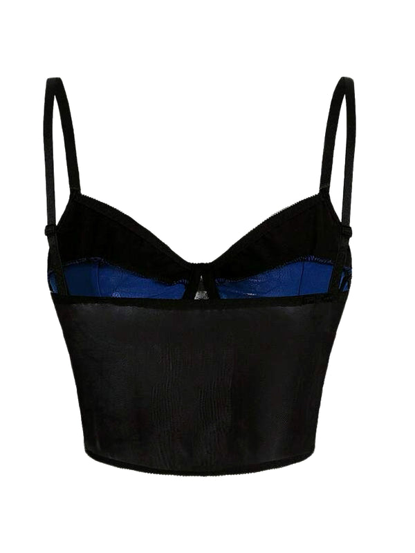 Dunkelblau 1980er Punk Spitze Patchwork Korsett Top
