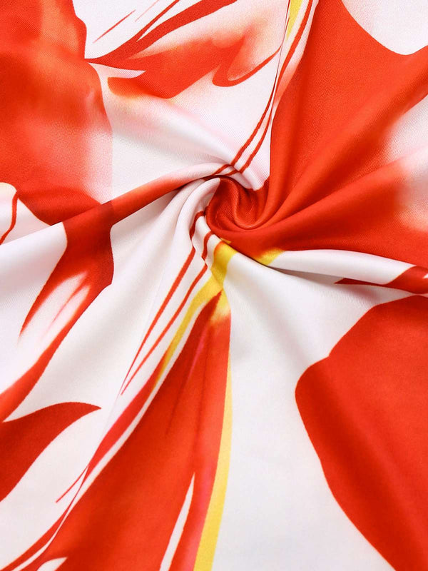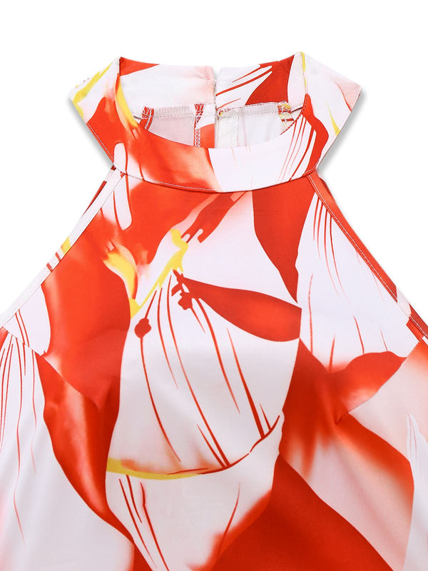Rot 1930er Abstrakt Drucke Gürtel Ärmelloses Jumpsuit