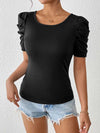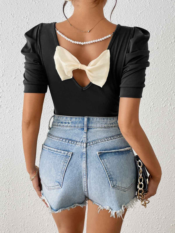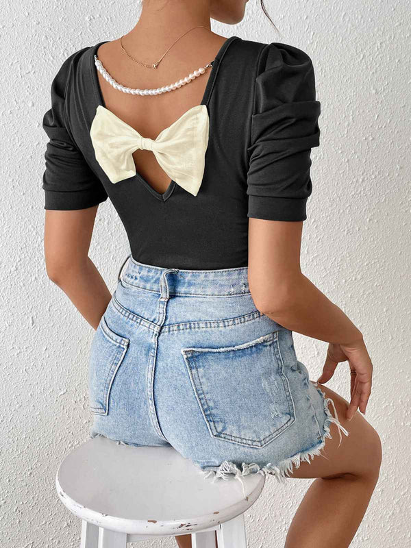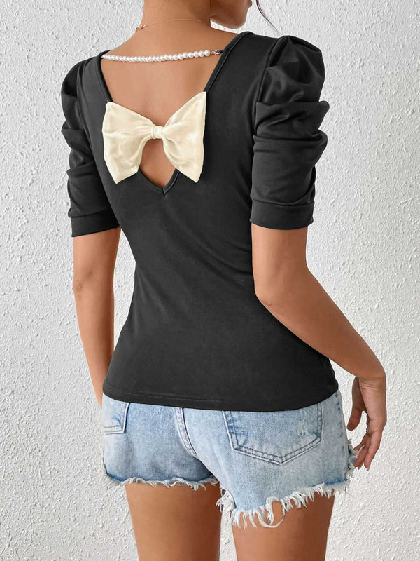 Schwarz 1940er Puffärmel Rückwärtsbogen Perle Top