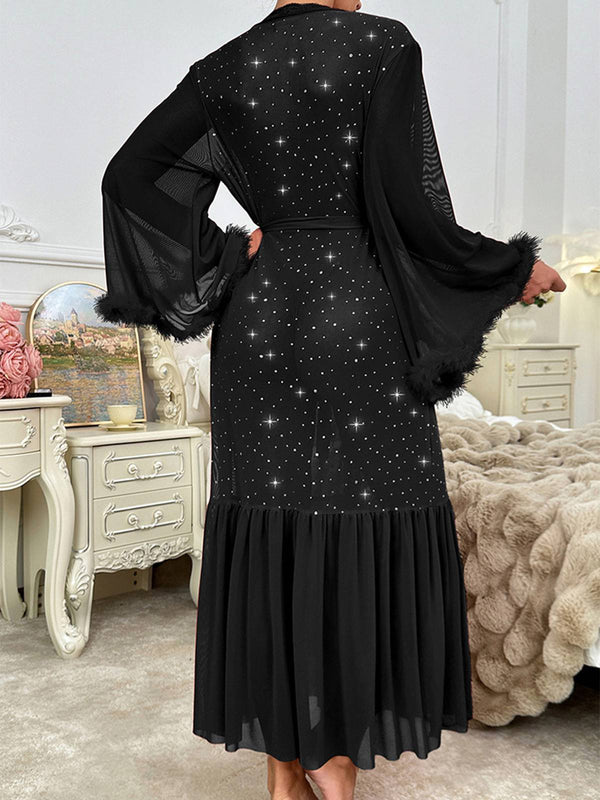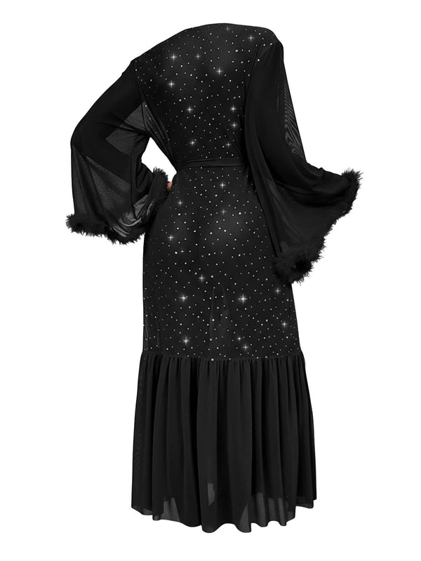 Schwarz 1970er Sheer Funkeln Netz Gürtel Bademantel