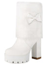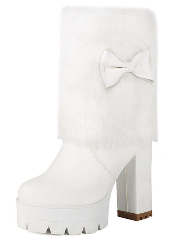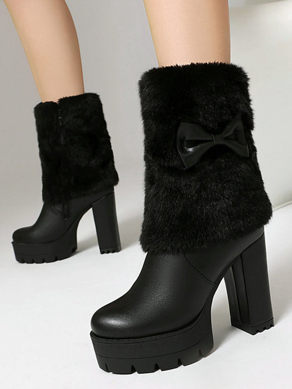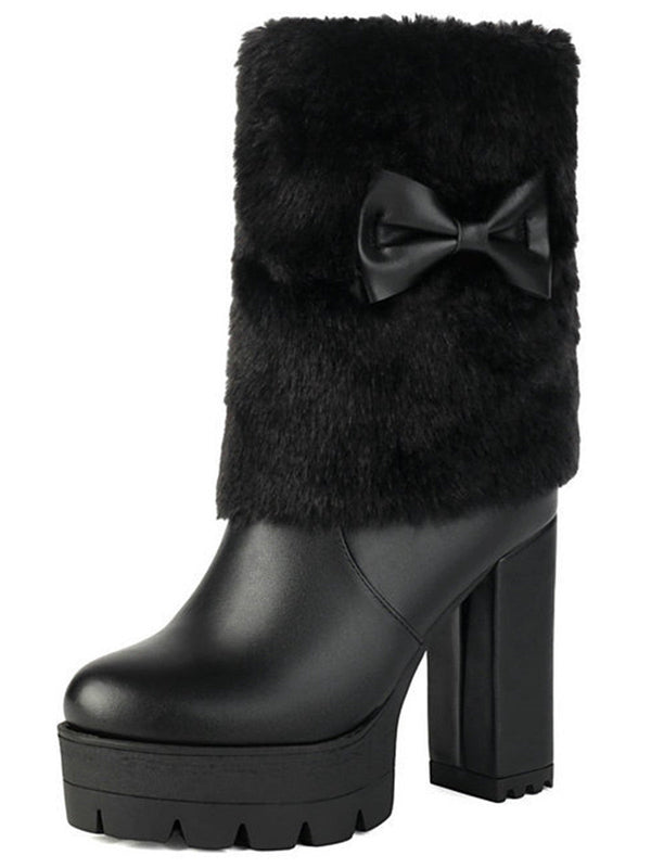 Vintage Bogen Plüsch Klobiger Absatz Stiefel