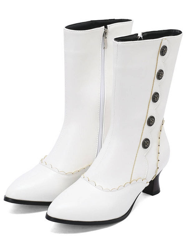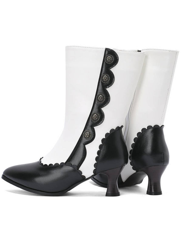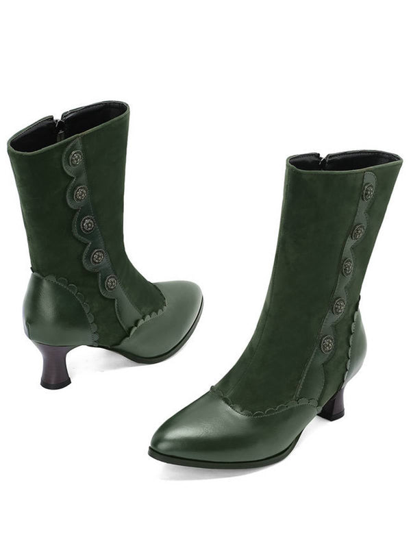 Vintage Leder Wildleder Taste Halbhoher Wade Stiefel