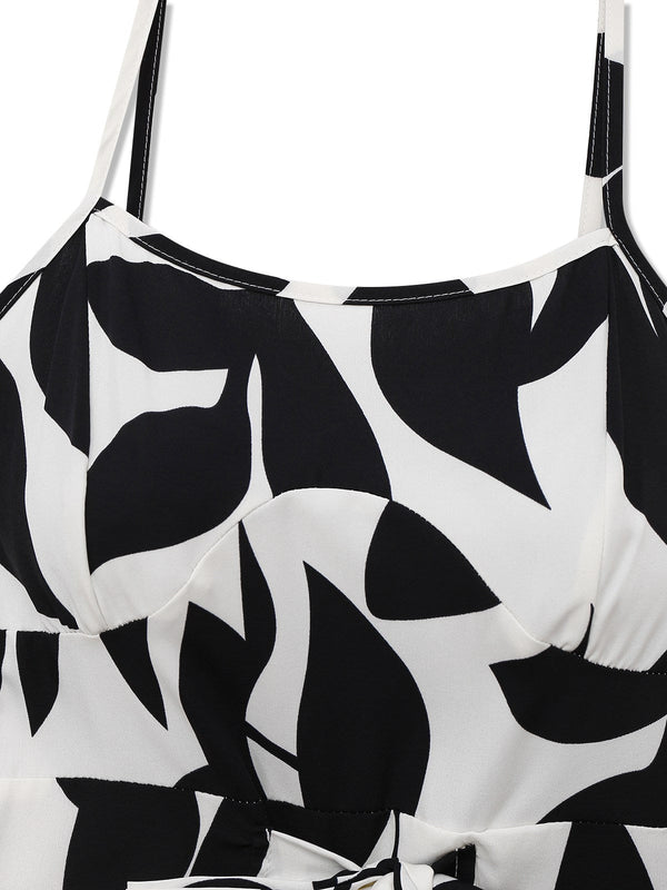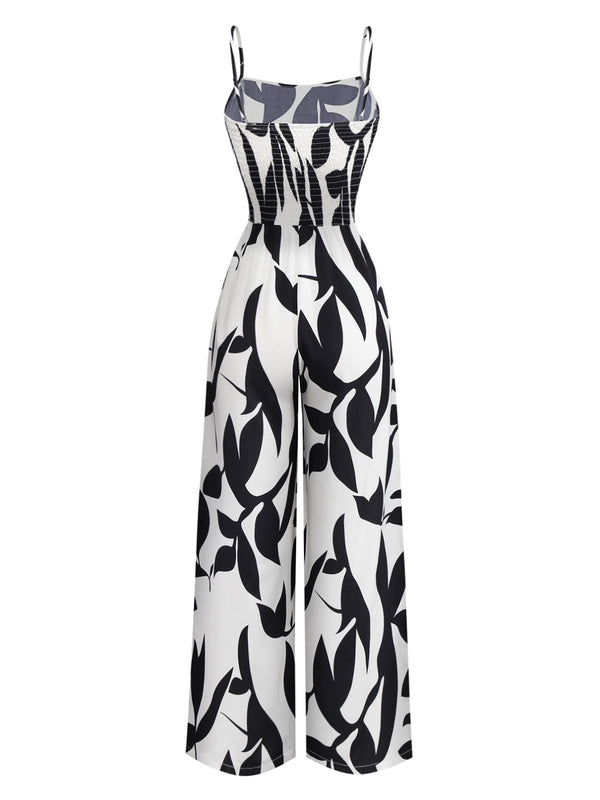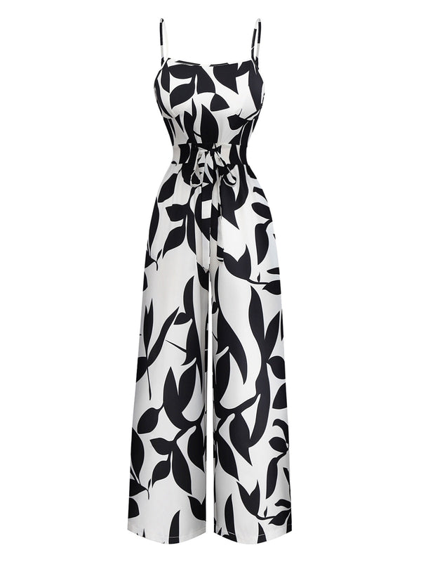 Schwarz 1930er Blätter Silhouette Spaghetti Träger Jumpsuit