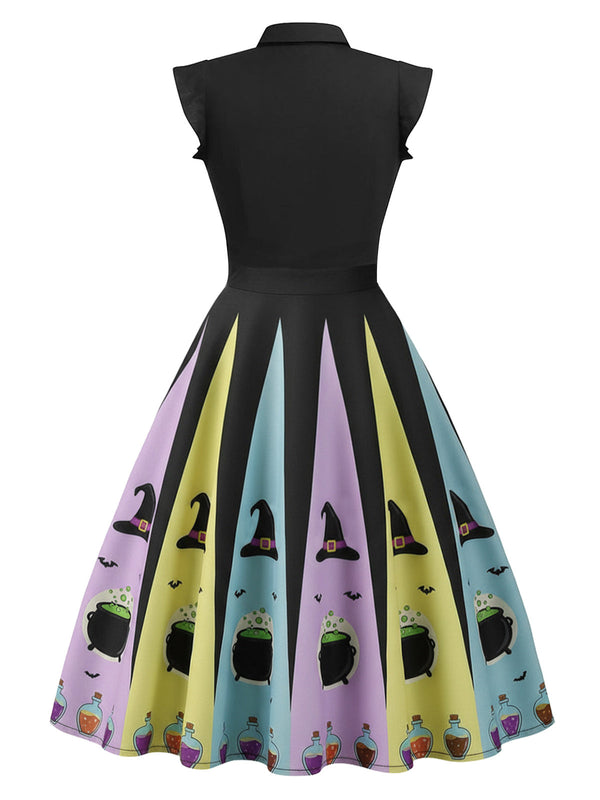 Schwarz 1950er Bogen Halloween Hexe Trank Swing Kleid