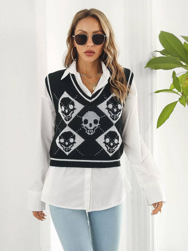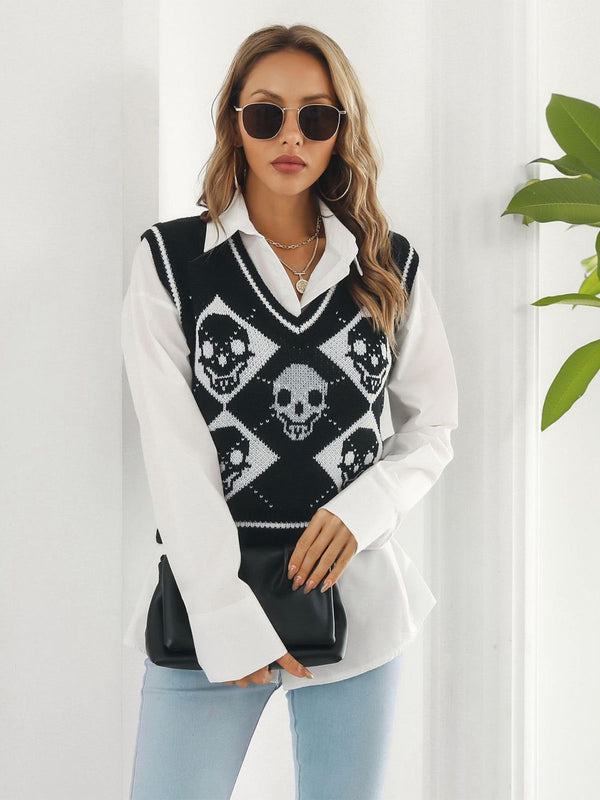 1980er Halloween Schädel Arygle Strickweste