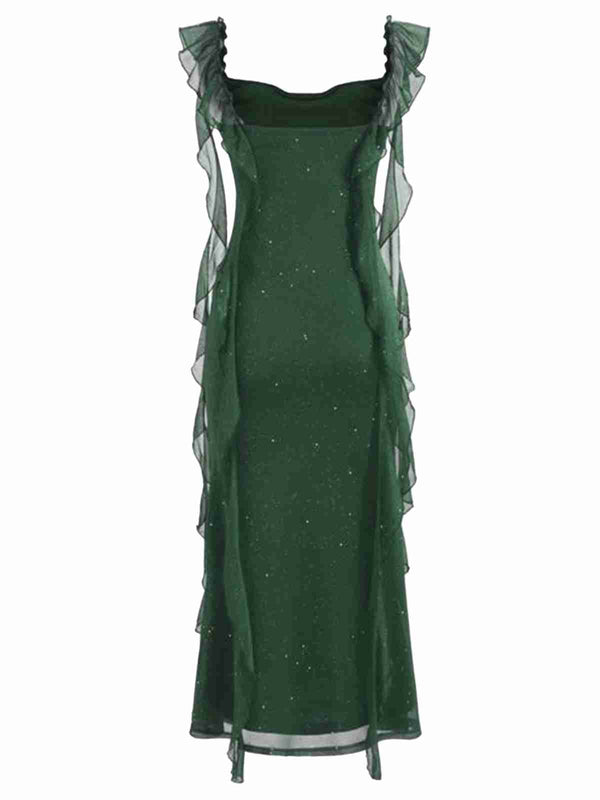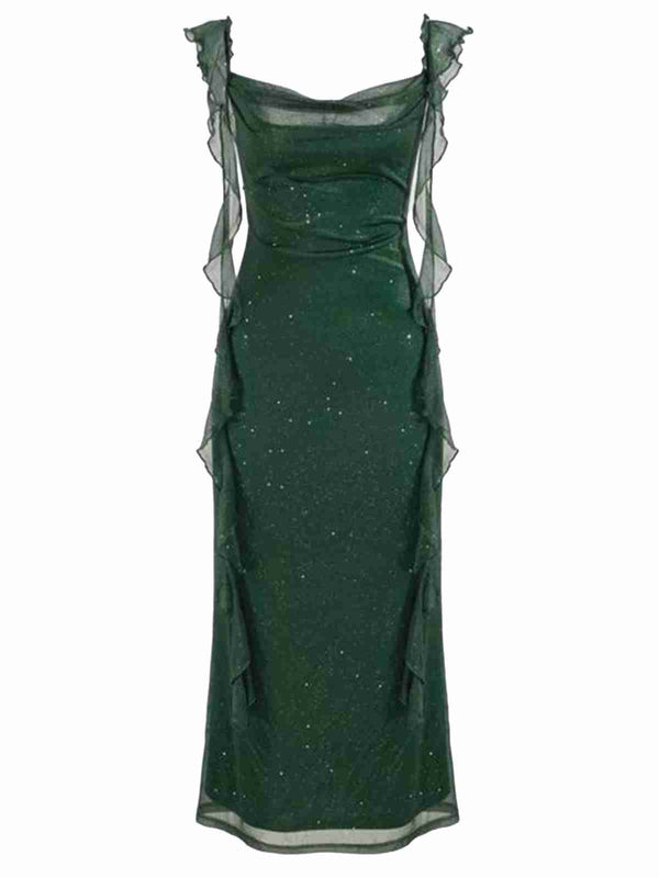 Grün 1920er Funkeln Netz Rüschen Rückenfrei Kleid